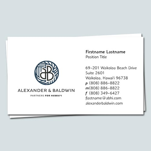 Non-Standard business card layout with Ph+Cel+Fax info. Initial layout has Name & Title, each on ONE line of textLayout Option • Name on TWO lines